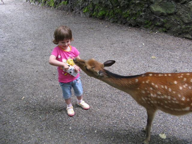 Eine grosse Attraktion für Lea war natürlich, dass sie die frei laufenden Mufflons und Sikahirsche mit speziellem Wildtierfutter aus der Hand füttern konnte. Die Kleine war mächtig stolz auf ihre Leistung, denn die Tiere waren teilweise grösser als das kleine Fräulein.
